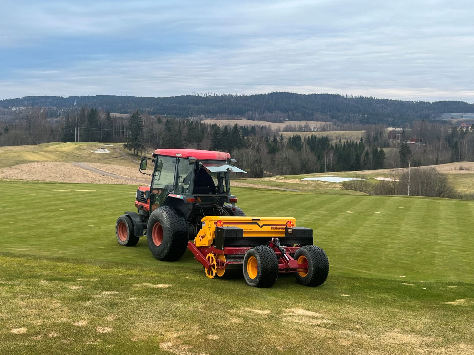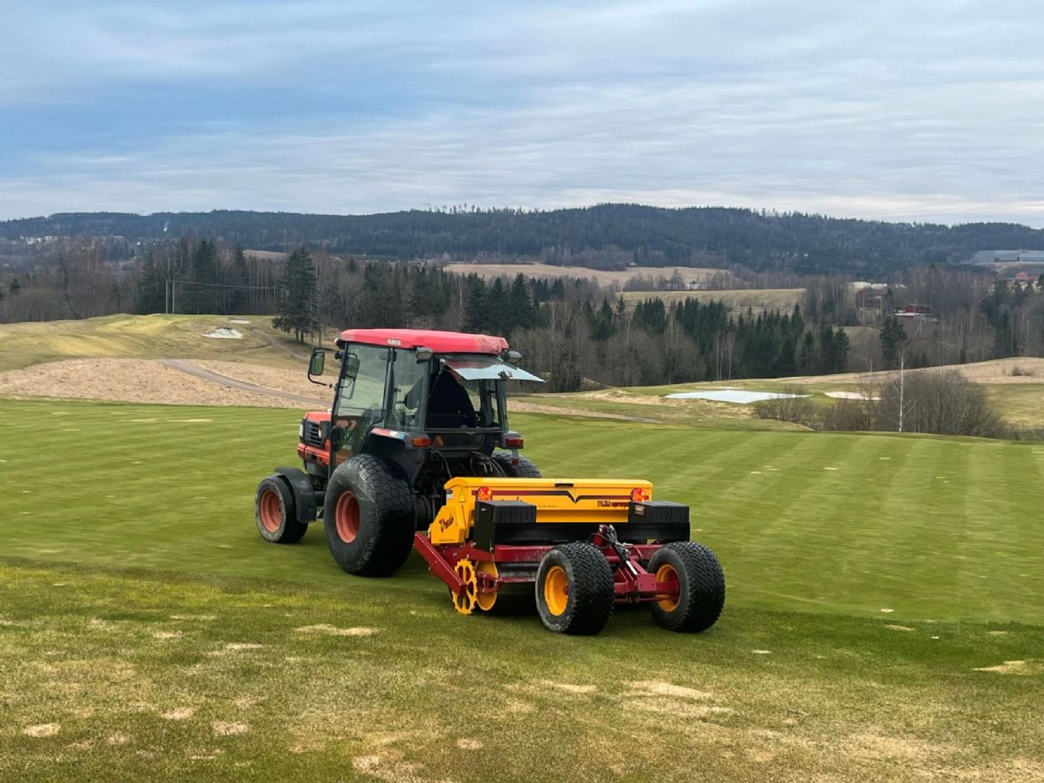 Vi har sådd, klippet og gjødslet greenene, og har lagt på vekstduker der det trengs.