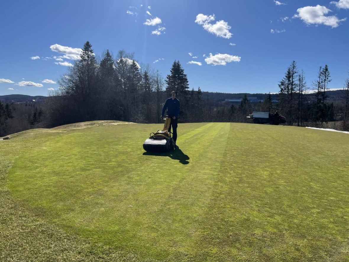 Alle utslagsstedene er i svært god stand etter vinteren. De er allerede vertikalskjært og gjødslet, og vi er i gang med å programmere våre nye Husqvarna 580L-maskiner som skal klippe alle utslagsstedene denne sesongen. Vi vil så og dresse utslagsstedene rett etter påske.